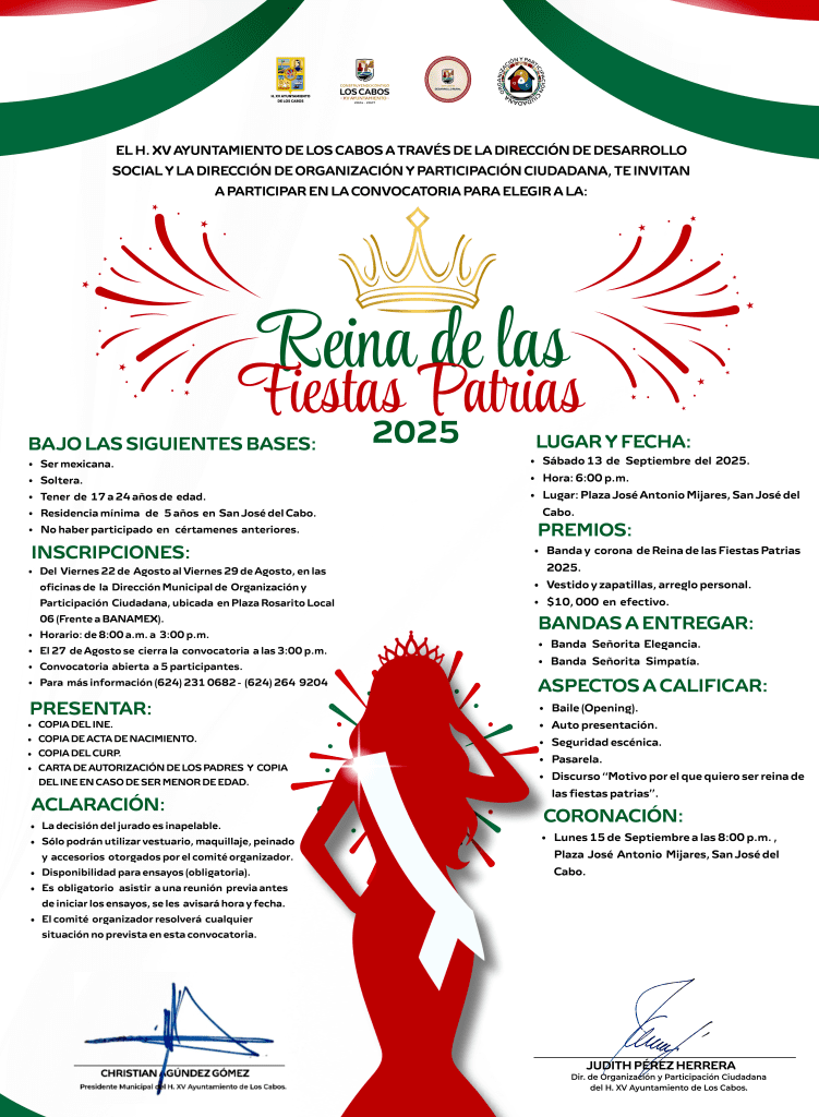 Abren inscripciones para elección de la Reina de las Fiestas Patrias 2025 en San José del Cabo