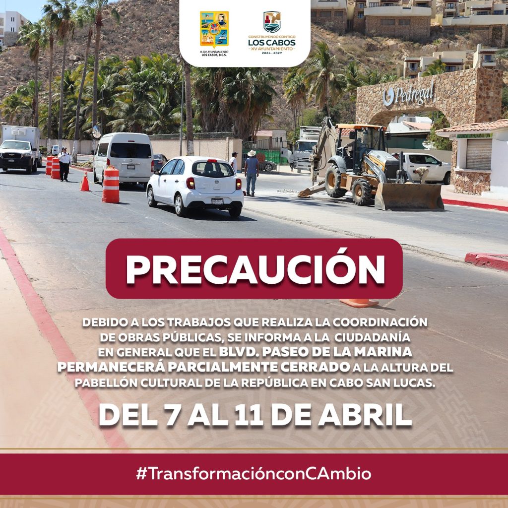 vial, la Coordinación de Obras Públicas en Cabo San Lucas informa que el bulevar Paseo de