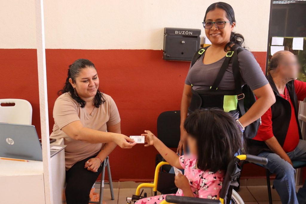 credenciales del Programa de Becas de Transporte 2025 en el edificio delegacional de