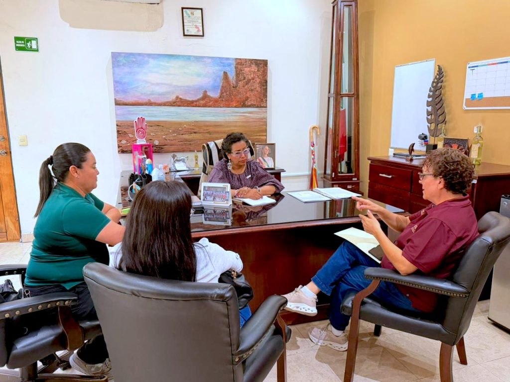 Los Cabos, Baja California Sur.– Con el propósito de atender y visibilizar las necesidades de estudiantes con Trastorno del Espectro Autista (TEA) y Trastorno por Déficit de Atención e Hiperactividad (TDAH), la delegada de Cabo San Lucas, Karina de la O Uribe sostuvo una reunión de trabajo con la directora de la escuela primaria “León Cota Collins”, Claudia Aguiñaga Ramírez.