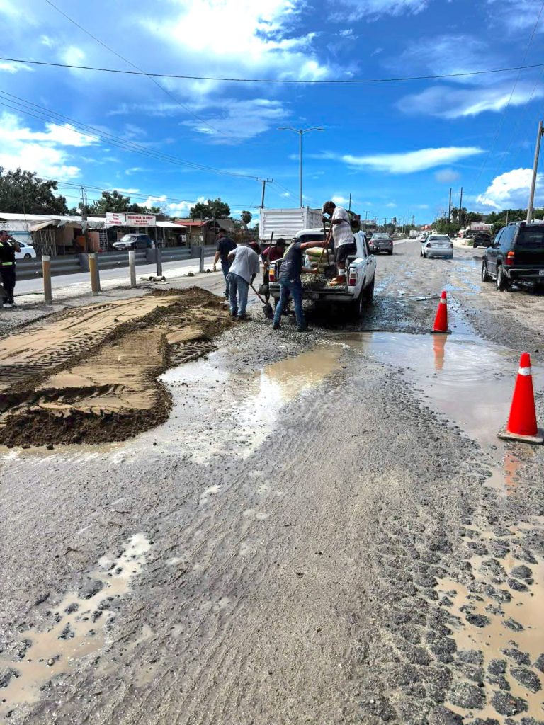 Los Cabos, Baja California Sur.- En cumplimiento a la instrucción del presidente municipal Christian Agúndez Gómez, el XV Ayuntamiento de Los Cabos, a través de la Dirección General de Obras Públicas desplegaron cuadrillas para iniciar con labores emergentes de bacheo en puntos prioritarios del municipio. Dichos trabajos son implementados en el tramo conocido como el