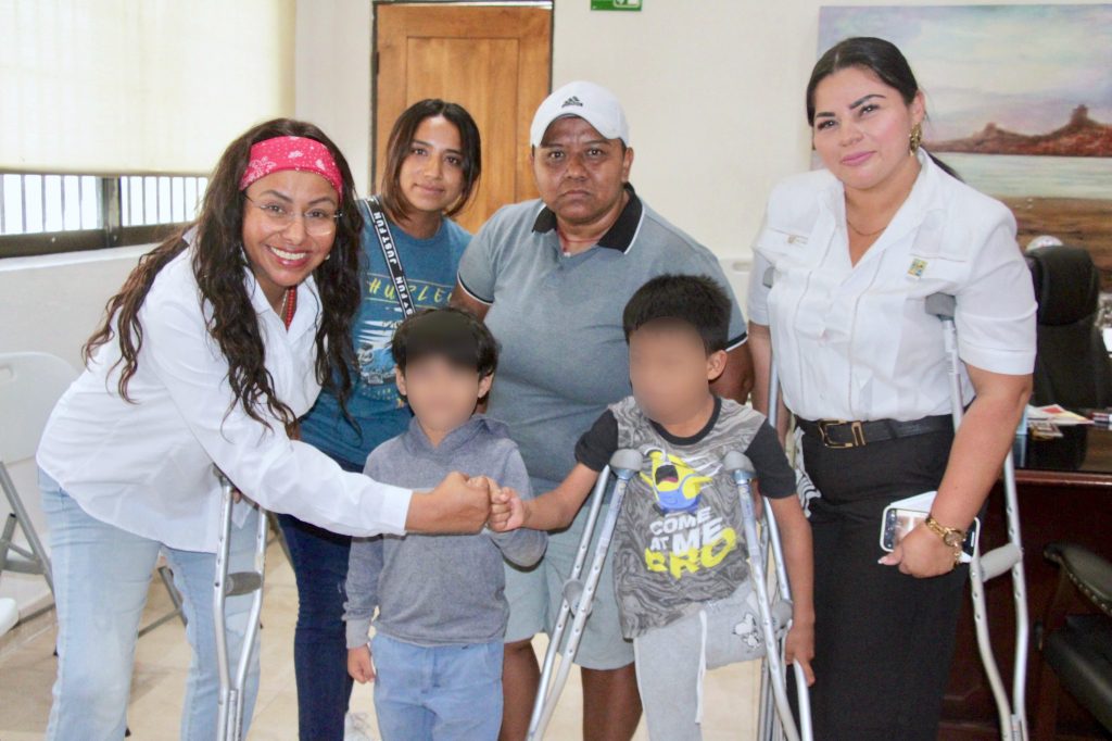 Como parte de la gestión, se entregaron muletas al menor y se canalizó a la familia al