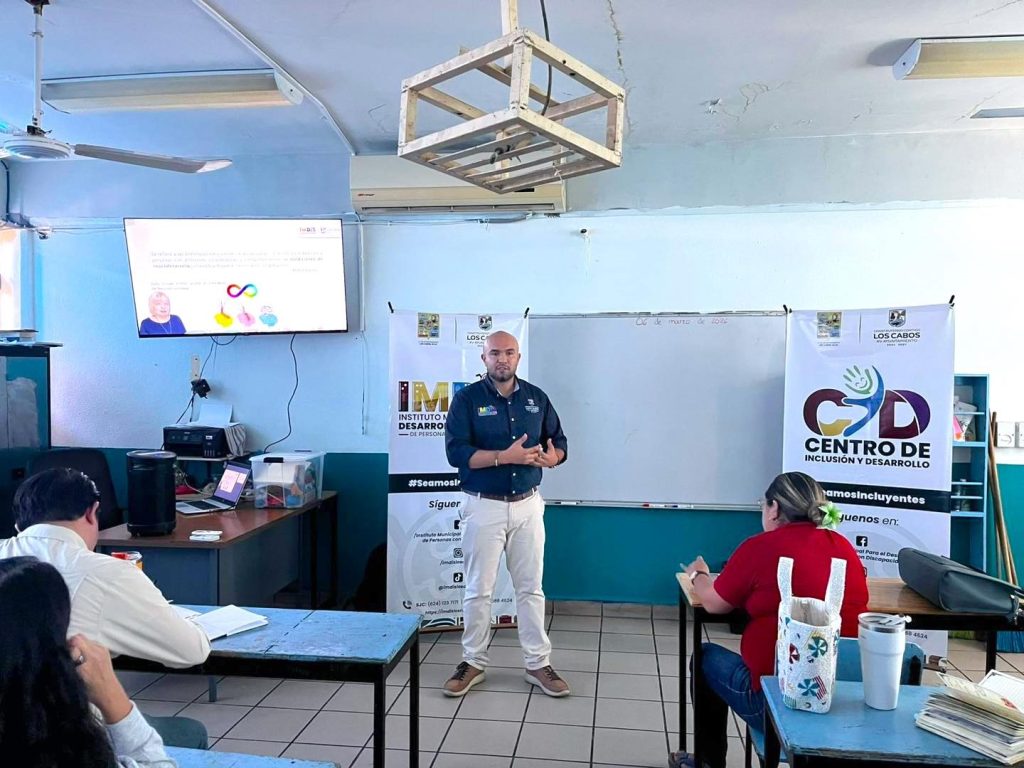 Los Cabos, Baja California Sur.– Con el objetivo de fortalecer la sensibilización y promover entornos escolares más incluyentes, el Instituto Municipal para el Desarrollo e Inclusión de Personas con Discapacidad (IMDIS), a través del equipo del Centro de Inclusión y Desarrollo (CID) de Cabo San Lucas, impartió la capacitación “Conocer para aceptar el autismo” a personal docente y administrativo de la escuela primaria Sor Juana Inés de la Cruz, ubicada en la colonia Las Palmas.