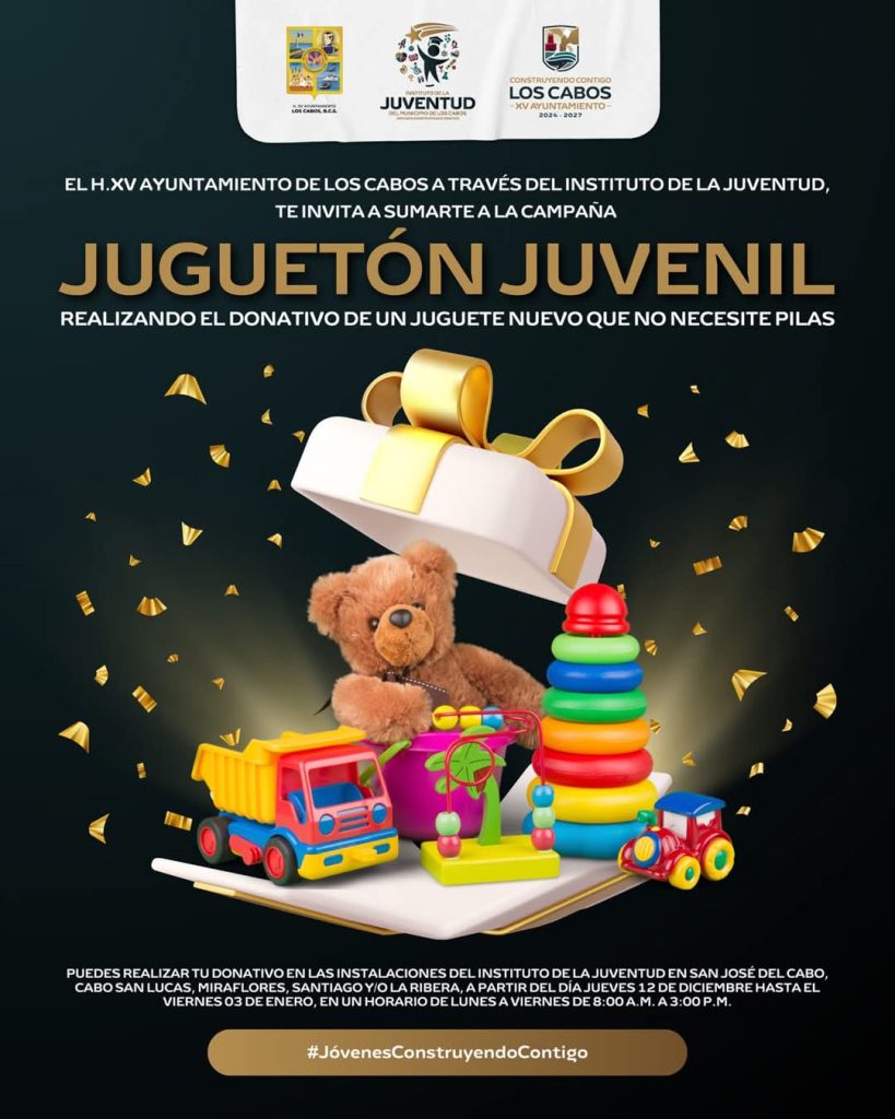 El Instituto de la Juventud del Municipio de Los Cabos, anunció el lanzamiento de la campaña “Juguetón Juvenil”, una iniciativa destinada a recolectar juguetes con el objetivo de regalar sonrisas y alegría, a niñas y niños este próximo 06 de enero. La convocatoria emitida por la citada dependencia, a cargo de, José Luis Gutiérrez Crespo, […]