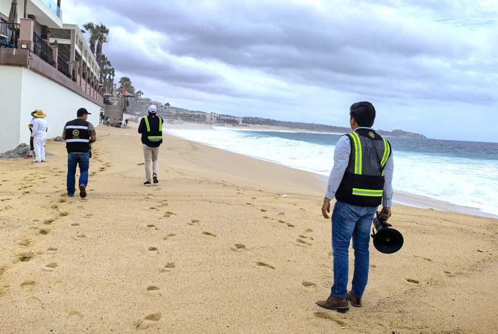 Realizan operativo preventivo en playas de Cabo San Lucas ante el paso del huracán “Flossie”