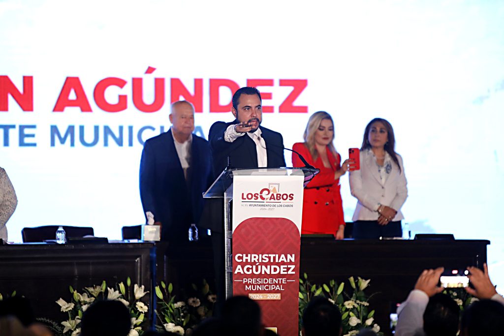 Los Cabos, Baja California Sur.- En el marco de la toma de protesta como presidente municipal de Los Cabos, Christian Agúndez Gómez, afirmó que su gobierno será uno donde todas las ideologías serán parte de un proyecto triunfador. Además, enfatizó que no se tomarán decisiones mediante imposiciones, ni acuerdos basados en ocurrencias o arbitrariedades. Por ello, pidió a quienes lo acompañaron en su gobierno: “disminuir al máximo la burocracia innecesaria, y brindar a la ciudadanía la mayor de las atenciones, que por ellos estamos aquí y esa excelente atención que les daremos es lo menos que se merecen. La forma y el actuar en el que nos desenvolvamos velará el futuro de nuestro municipio”.