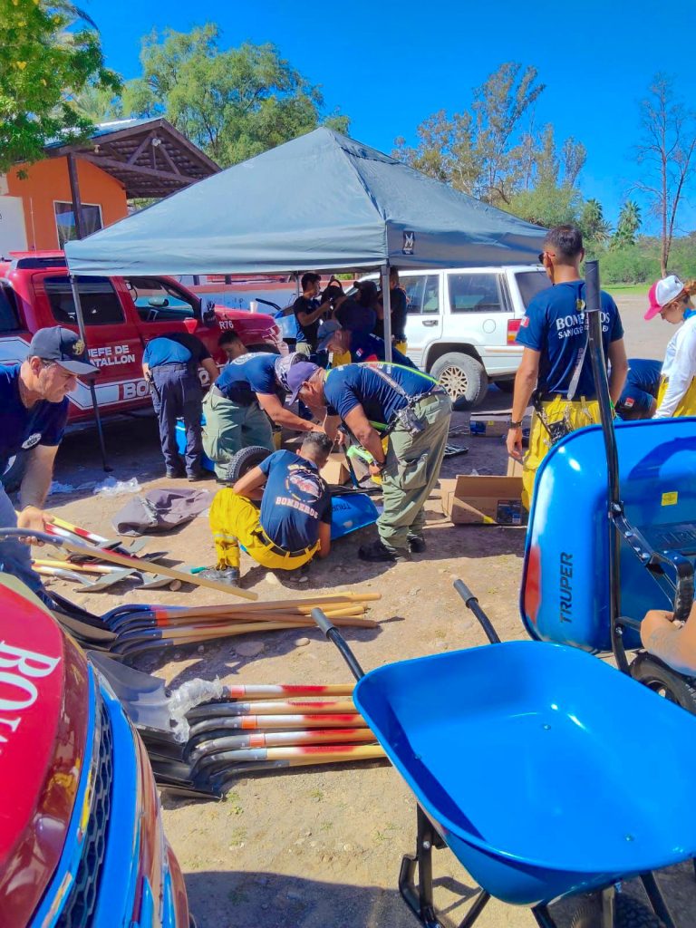 Bomberos de Cabo San Lucas, para apoyar a las familias afectadas por las inundaciones