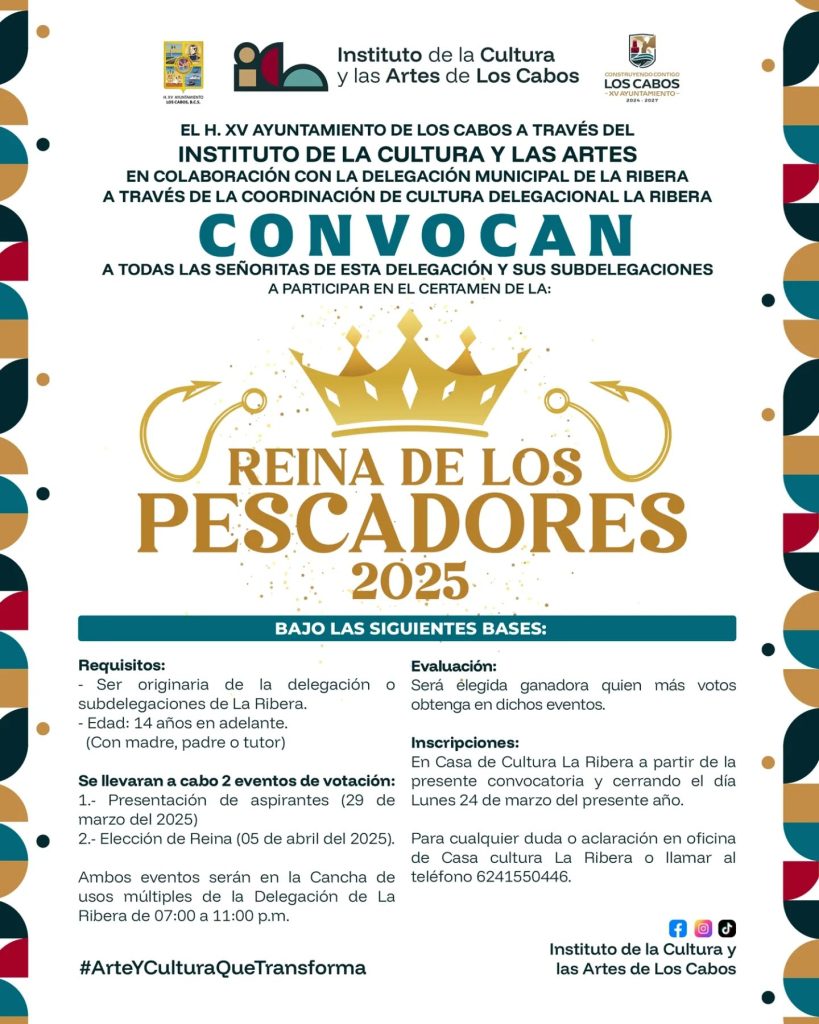 Cultura y las Artes (ICA), convoca a participar en el certamen de la Reina de los Pescadores