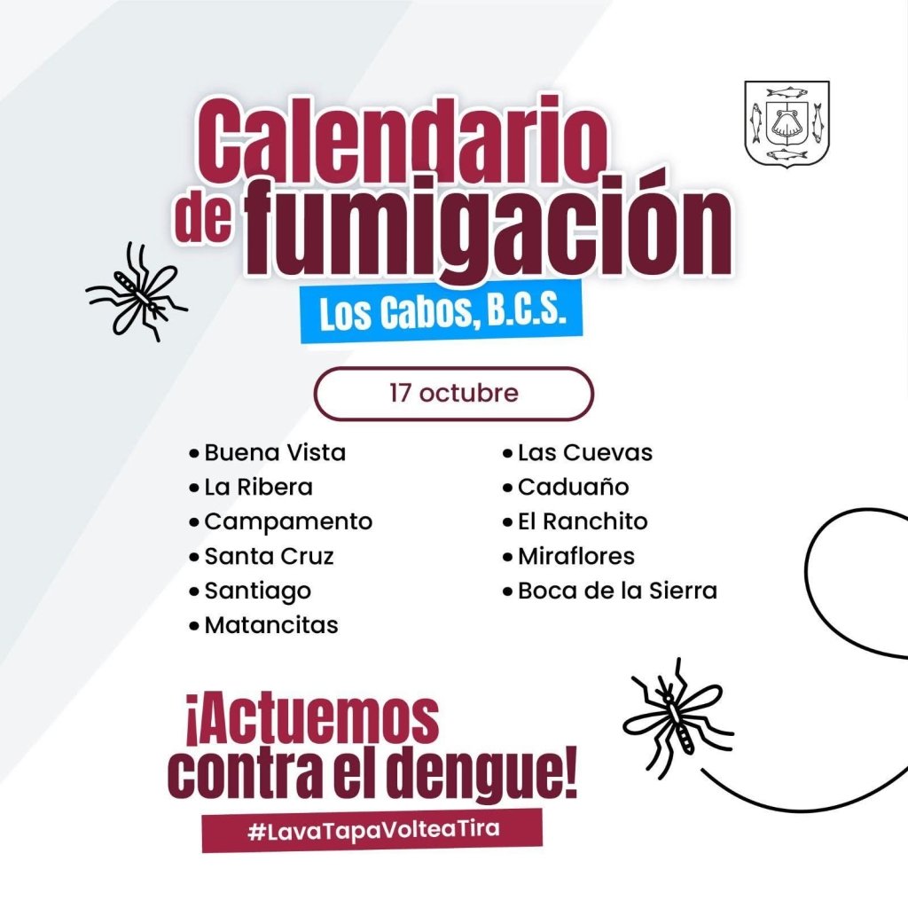 informa que este viernes 17 de octubre se llevará a cabo una jornada de fumigación