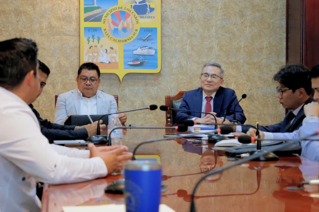 Los Cabos, B.C.S.- En representación del presidente del XV Ayuntamiento de Los Cabos, Christian Agúndez Gómez, el secretario general municipal, Alberto Rentería Santana, sostuvo una reunión con el embajador de Corea en México, Huh Tae-Wan, donde se estrecharon lazos diplomáticos y de cooperación entre las dos regiones.