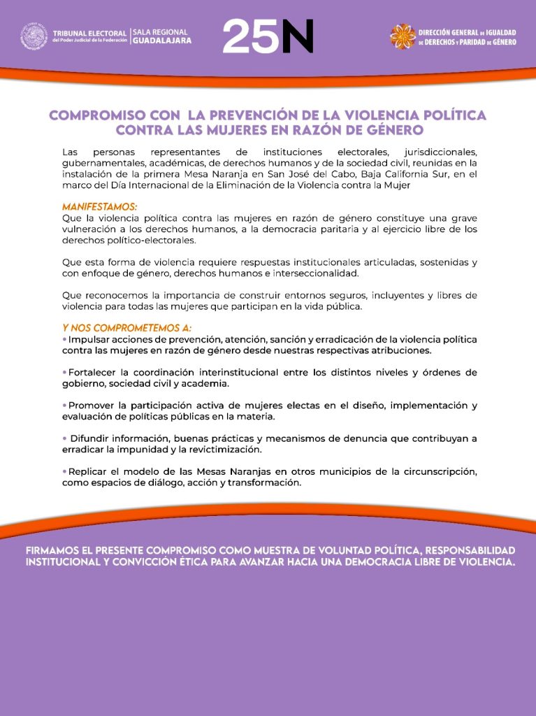 Gobierno de Los Cabos se suma a la instalación de la primera Mesa Naranja para prevenir la violencia política contra las mujeres
