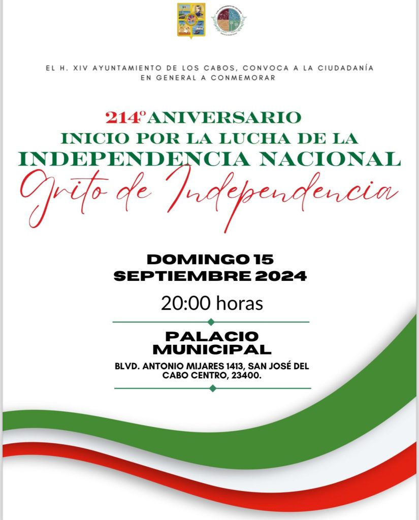 Finalmente se destaca que, en el municipio de Los Cabos, está todo listo  para festejar el orgullo de ser mexicanas y mexicanos conmemorando el tradicional Grito de Independencia, en compañía de familiares y amigos, ¡no faltes!