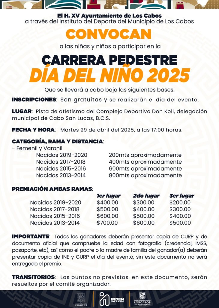 Invitan a celebrar Día del Niño con carrera pedestre en Cabo San Lucas; habrá premios en efectivo