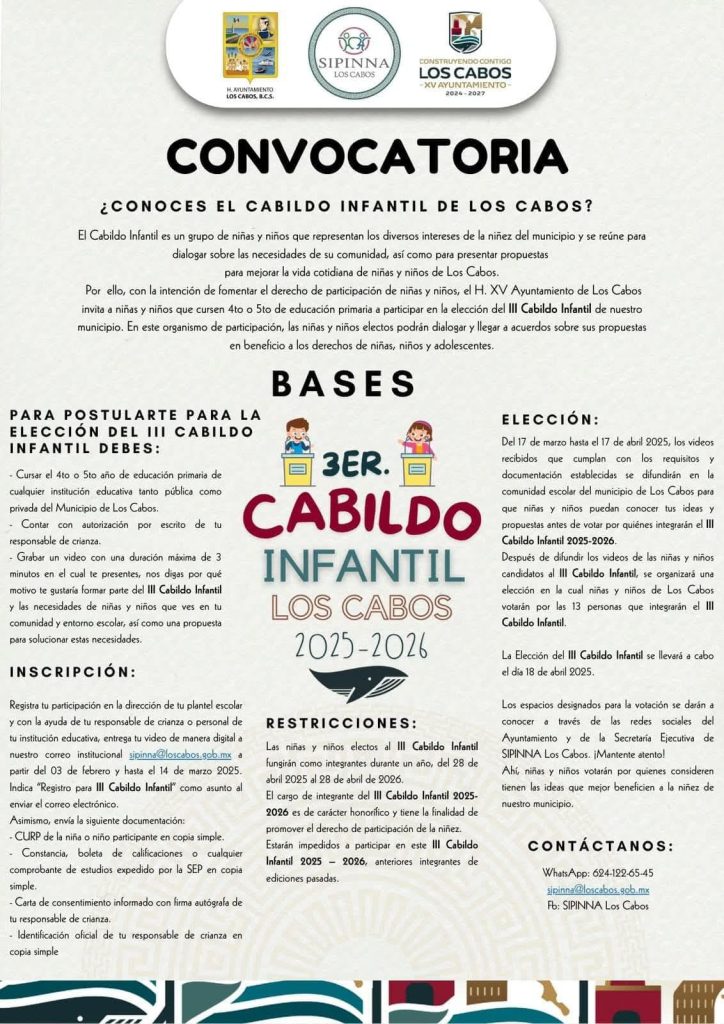 elección final se realizará el 18 de abril de 2025, donde niñas y niños de Los Cabos elegirán