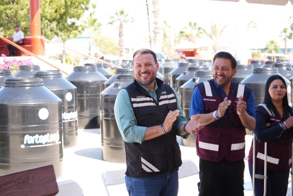 Los Cabos, B.C.S., 12 de marzo de 2026.– Con el objetivo de fortalecer el bienestar social y mejorar las condiciones de acceso al agua en zonas donde el suministro es limitado, el Organismo Operador Municipal del Sistema de Agua Potable, Alcantarillado y Saneamiento de Los Cabos (Oomsapas), encabezado por Ramón Rubio Apodaca, realizó la primera entrega de 50 tinacos con capacidad de 1,100 litros, destinados a familias vulnerables de la delegación de Cabo San Lucas.