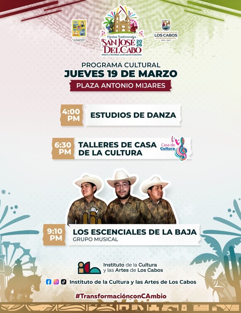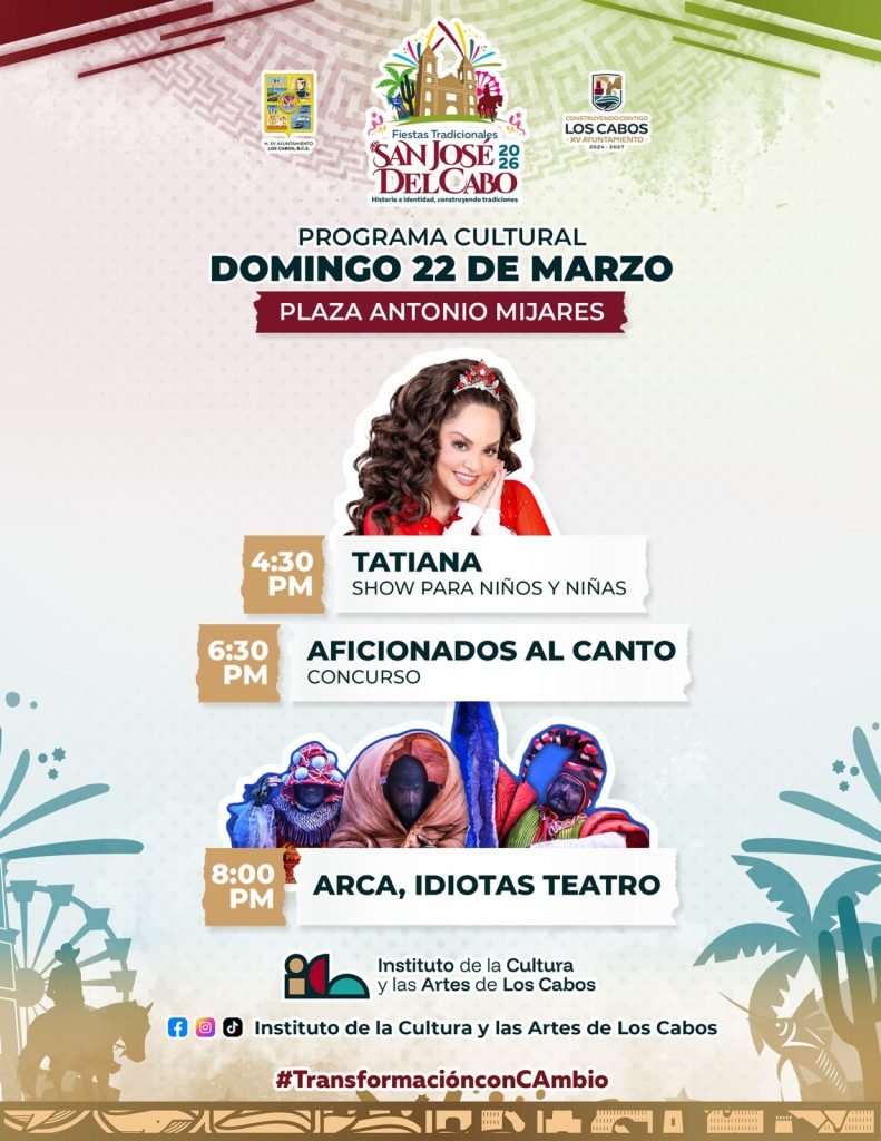 Con esta programación, autoridades municipales buscan que las Fiestas Tradicionales San José del Cabo 2026 también sean un espacio de convivencia, identidad y acceso a la cultura para todas y todos.