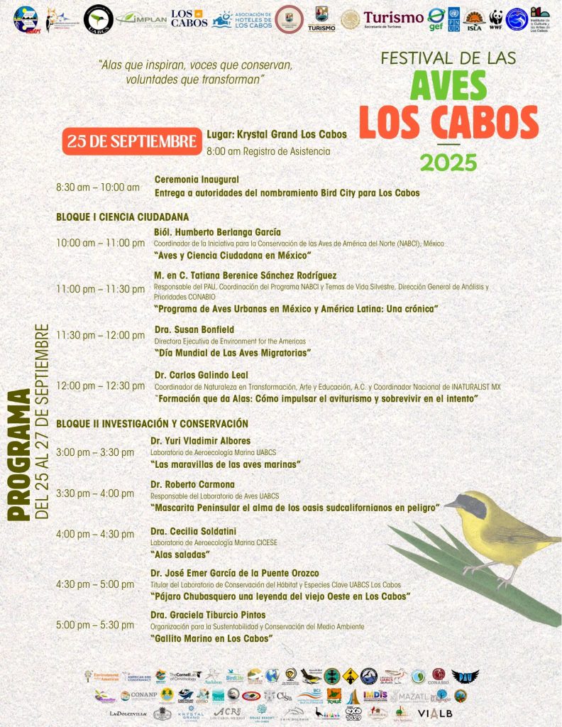 oficial del Primer Festival Internacional de las Aves Los Cabos 2025, que se llevará a cabo