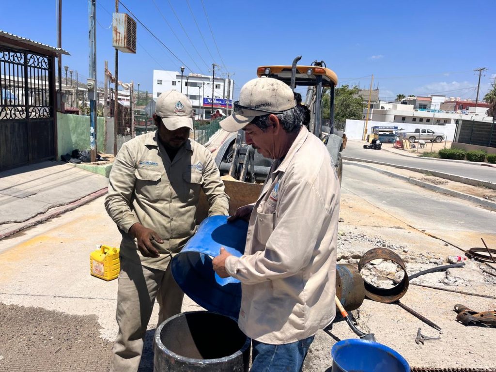 Los Cabos, B.C.S., 03 de sep.- En beneficio de las colonias que dependen de la Estación de Bombeo número 2(Eb2) y para asegurar el tandeo de agua potable principalmente a las colonias Los Cangrejos l, Agua Clara, y Altamira, el equipo del Agua Potable al frente del ingeniero Ramón Rubio Apodaca trabajó durante 5 horas en la reparación de una fuga en el acueducto de 16 pulgadas de la planta desalinizadora de Cabo San Lucas a la altura de la colonia Los Cangrejos.
