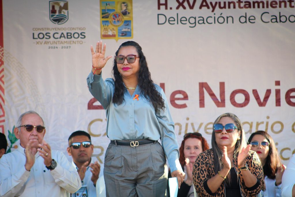 En punto de las 08:00 de la mañana dio inicio en Cabo San Lucas, la ceremonia cívica conmemorativa al 114° Aniversario de la Revolución Mexicana con la asistencia de la delegada municipal Karina Jesús de la O Uribe, en representación del alcalde Christian Agúndez Gómez: “con profundo respeto y admiración honramos a quienes lucharon por un México más equitativo, dejando un legado de valor, tenacidad y espíritu de compromiso, les invito a reflexionar sobre los logros alcanzados y reconocer los desafíos que aun enfrentamos como nación, trabajemos en unidad para construir un país donde la justicia, la igualdad y la libertad sean realidades tangibles para todas las mexicanas y mexicanos”, expresó en su mensaje la delegada.